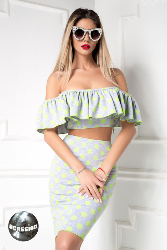 Ocassion Damen 2-Teiler Croptop+ Minirock HIGH-WAIST Pencilrock XS-L