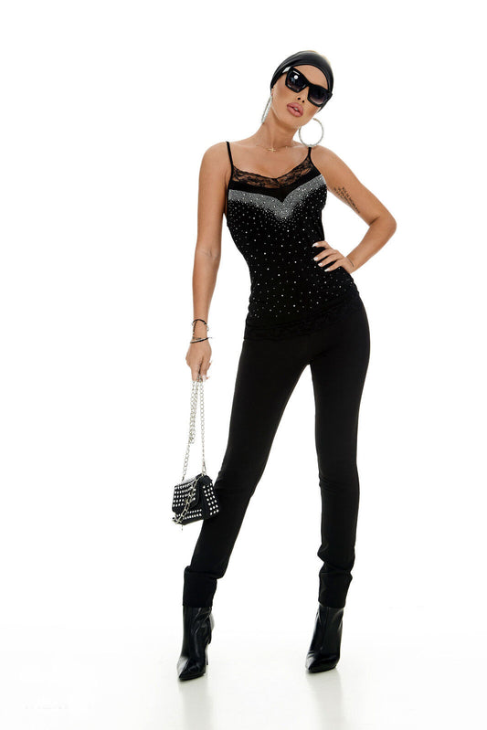 By Alina Mexton Damen Trägertop T-Shirt Unterhemd Oberteil Strass Spitze XS-M