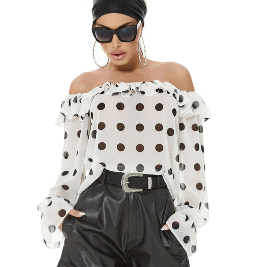 By Alina Mexton Damen Chiffon Bluse transparent Carmenbluse Longsleeve XS S