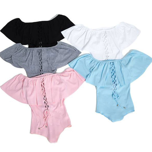 By Alina Mexton Damen Body schulterfrei Carmenbluse Bodysuit Schnürung XS S M