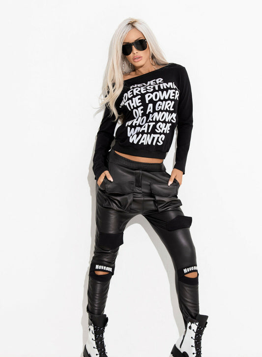 Mexton Damen Pullover U-Boot Ausschnitt Sweater Schrift Schwarz XS 34