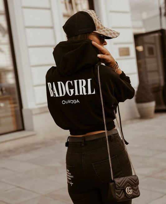 OLA Damen Hoodie Over-Size Sweatshirt Cropped Pullover Kapuzenpullover Schwar