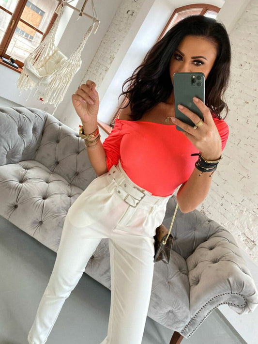 Ola Damen Body Bodysuit Bluse Bodytop T-Shirt gerafft 3/4 Ärmelig Orange