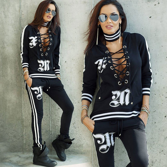 By Alina Mexton Damen 2-Teiler Pullover + Jogginghose Freizeitanzug Schwarz-Weiß