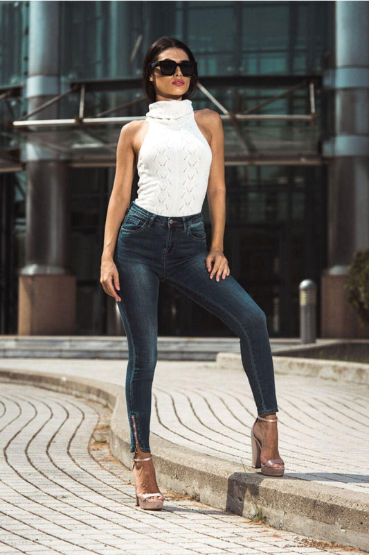Damen Jeans High Waist SKINNY Hose Jeanshose Röhrenjeans Ankle Zip Blau 32-XXS