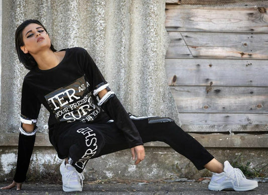 Damen Oversize Pullover + Boyfriend Baggy Jogginghose Freizeitanzug Samt