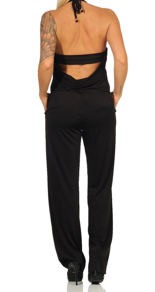 Damen Neckholder Overall Jumpsuit High-Waist Hosenanzug Neck wide Leg Strandhose