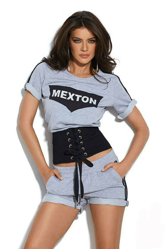 By Alina Mexton Damen 2-Teiler Cropped Top Pullover + High-Waist Hotpants XS-M