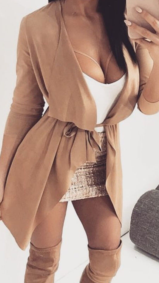 LA Damen Cardigan Zipfeljacke Wasserfall Strickjacke Jacke Wildleder Longjacke