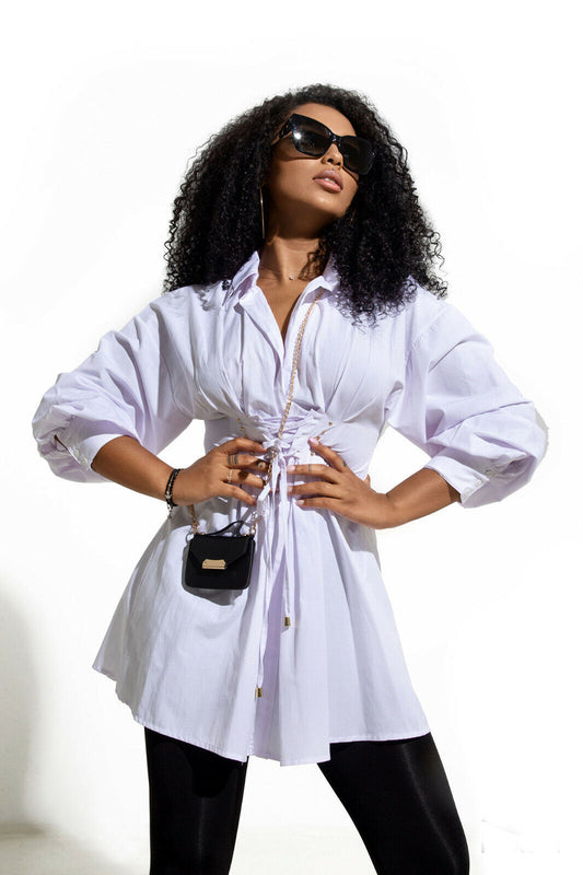 By Alina Mexton Damen Bluse Hemdbluse Tunika Longbluse Minikleid Weiß XS S M