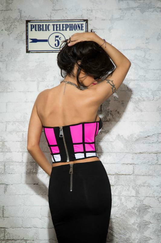By Alina Mexton Damen Bandeau Cropped Top Schulterfrei Bustiertop Rosa 32-36