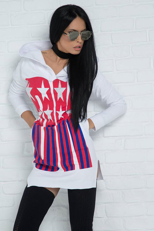 By Alina Mexton Damen Kleid Minikleid Tunika Kleid Longshirt Bodycon-Kleid Weiß