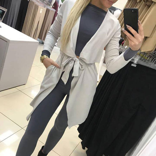LA Damen Cardigan Zipfeljacke Wasserfall Strickjacke Jacke Wildleder Longjacke