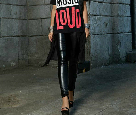 Mexton Damenhose Röhrenhose Hüfthose Kunstleder Leggings Lederlook S-M