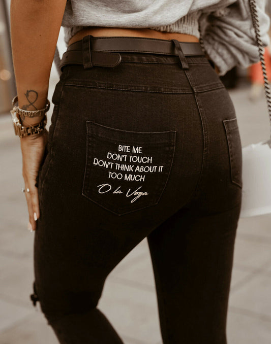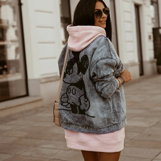 OLA Damen Jeansjacke Over-Size Jeans Jacke Print Schwarz Blau S M L XL