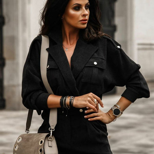 Ola Damen Cord Overall Jumpsuit High-Waist Stoffhose Hosenanzug Catsuit Schwarz